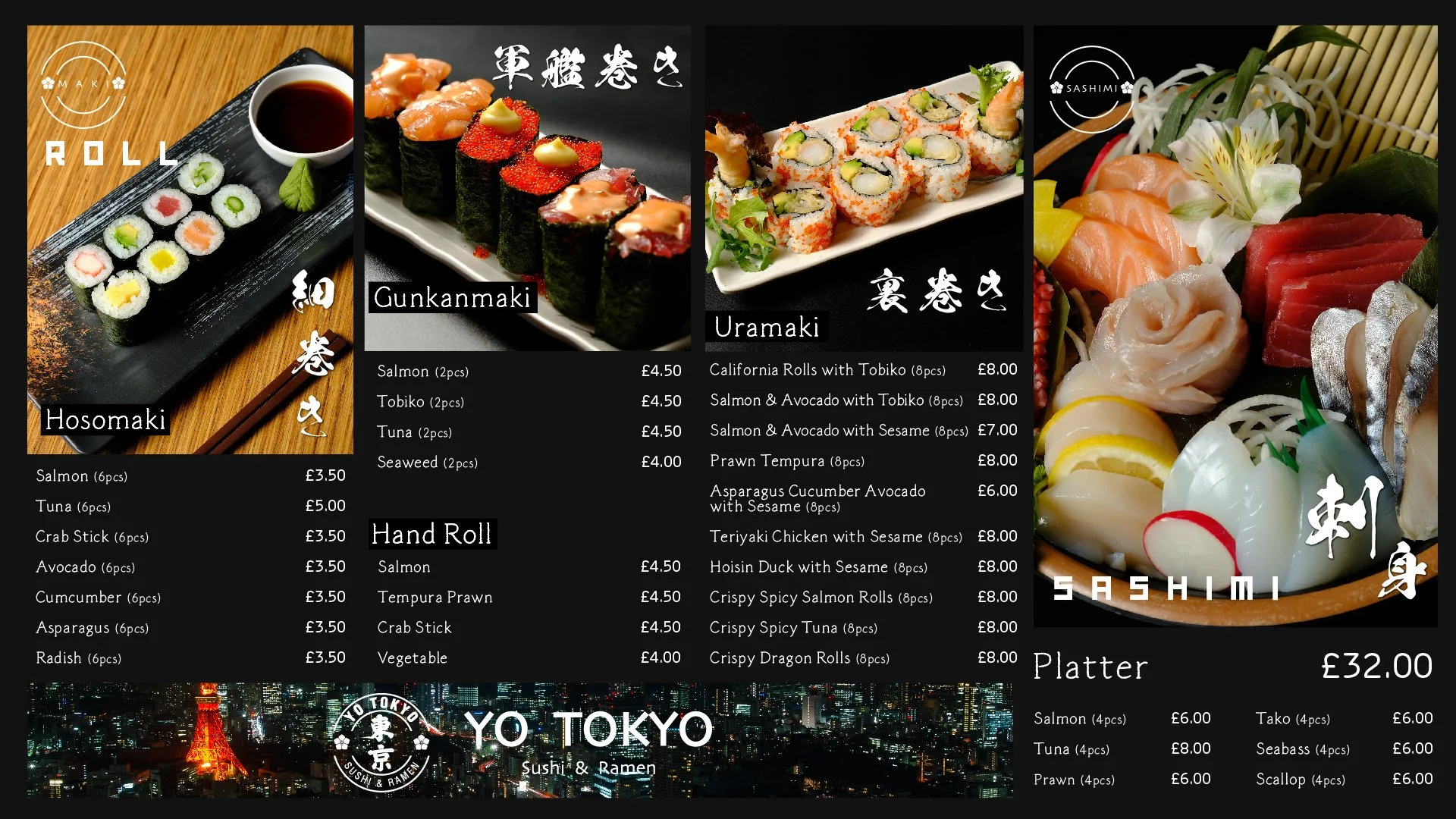 Welcome to Yo Tokyo, where authentic Japanese flavors come alive! Indulge in the rich umami of our traditional ramen bowls, crafted with care and expertise. Craving sushi? Dive into our exquisite selection of fresh rolls and savor the taste of Japan. Experience culinary excellence, right here at Yo Tokyo.